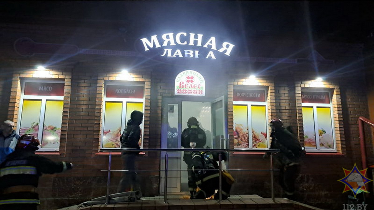 Мясной магазин загорелся на Смоленской площади в Витебске. Сообщение о загорании поступило спасателям 7 декабря в 00:01 по системе передаче извещений о ЧС «Молния».