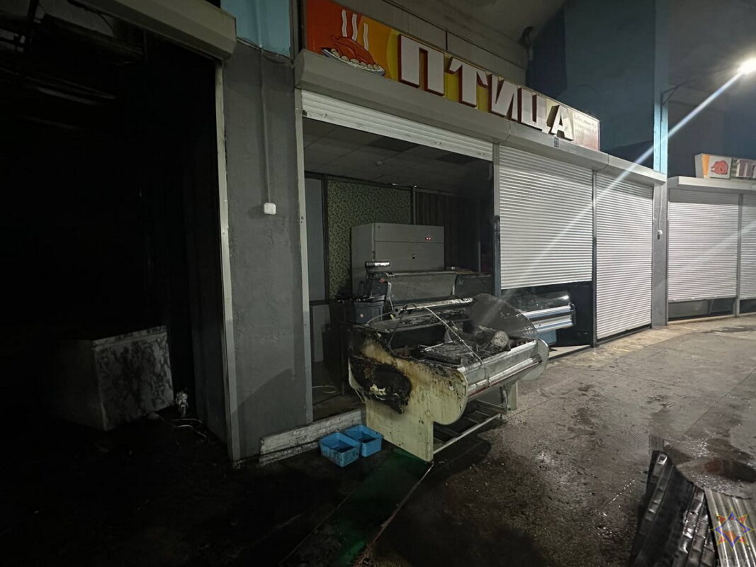 Сегодня ночью в здании сработала система автоматической пожарной сигнализации. Горела холодильная витрина в торговом павильоне, расположенном в здании. Спасатели ликвидировали пожар: за пределы павильона огонь не распространился.