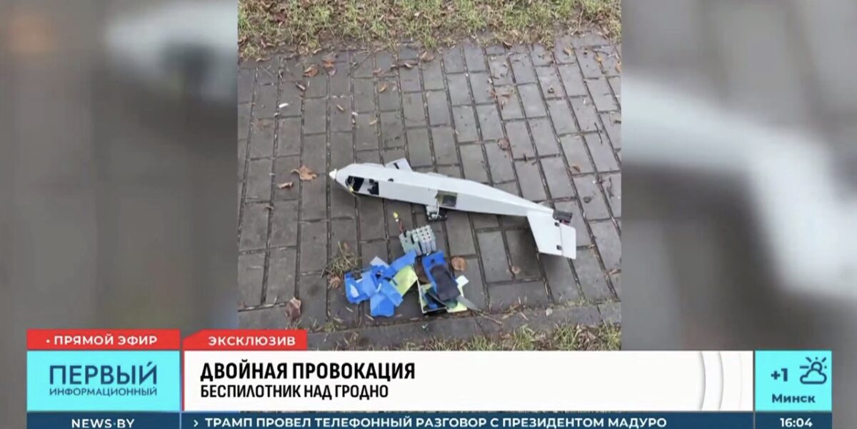 Телеканал «Первый информационный» показал видео из Гродно с якобы прилетевшим из Литвы беспилотником. Пропагандисты назвали ситуацию «двойной провокацией не только против Беларуси, но и против Польши».