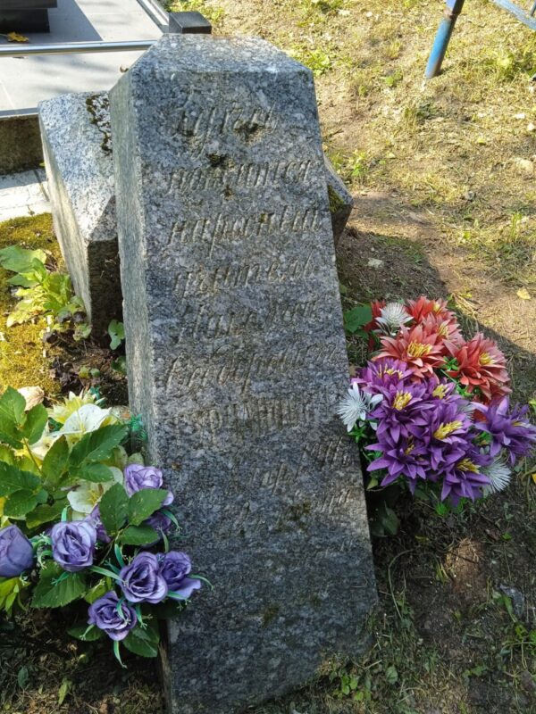 «Здесь покоится народный учитель Николай Фёдорович Турчанович. Умер 8 апреля 1911 г. на 62 году жизни. Память жены и детей», — такі надпіс выбіты на каменным абеліску.