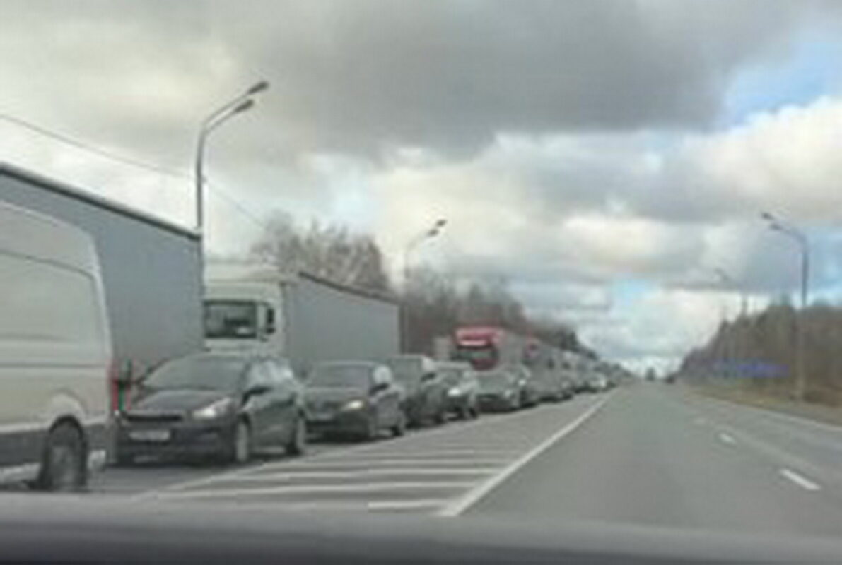 На выезд из Беларуси в РФ образовались очереди легковых автомобилей. Видео очереди опубликовано в телеграм-канале Infotrans Media Belarus.