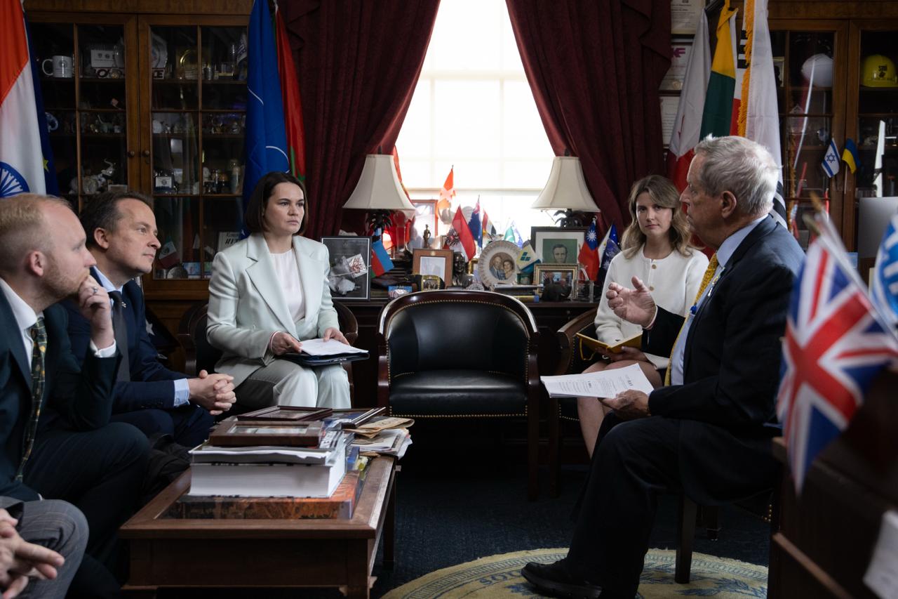 В Конгрессе Тихановская провела встречи с конгрессменами Крисом Смитом, Джо Уилсоном, Марио Диас-Балартом, Чаком Эдвардсом, сенаторами Дэном Салливаном, Риком Скоттом, Джин Шахин, Диком Дурбином и Роджером Уикером. Также прошли брифинги с советниками по национальной безопасности и представителями Республиканской партии, в том числе близкими к президенту Дональду Трампу, сообщает Офис Тихановской.
