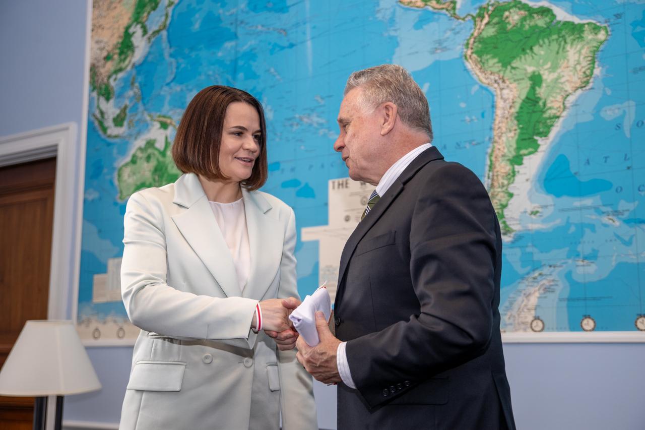 Лидер беларусских демсил также встретилась с представителями Госдепа США, в том числе с заместителем помощника госсекретаря Крисом Смитом и ответственными за направления прав человека и религиозной свободы. На переговорах обсуждалось: