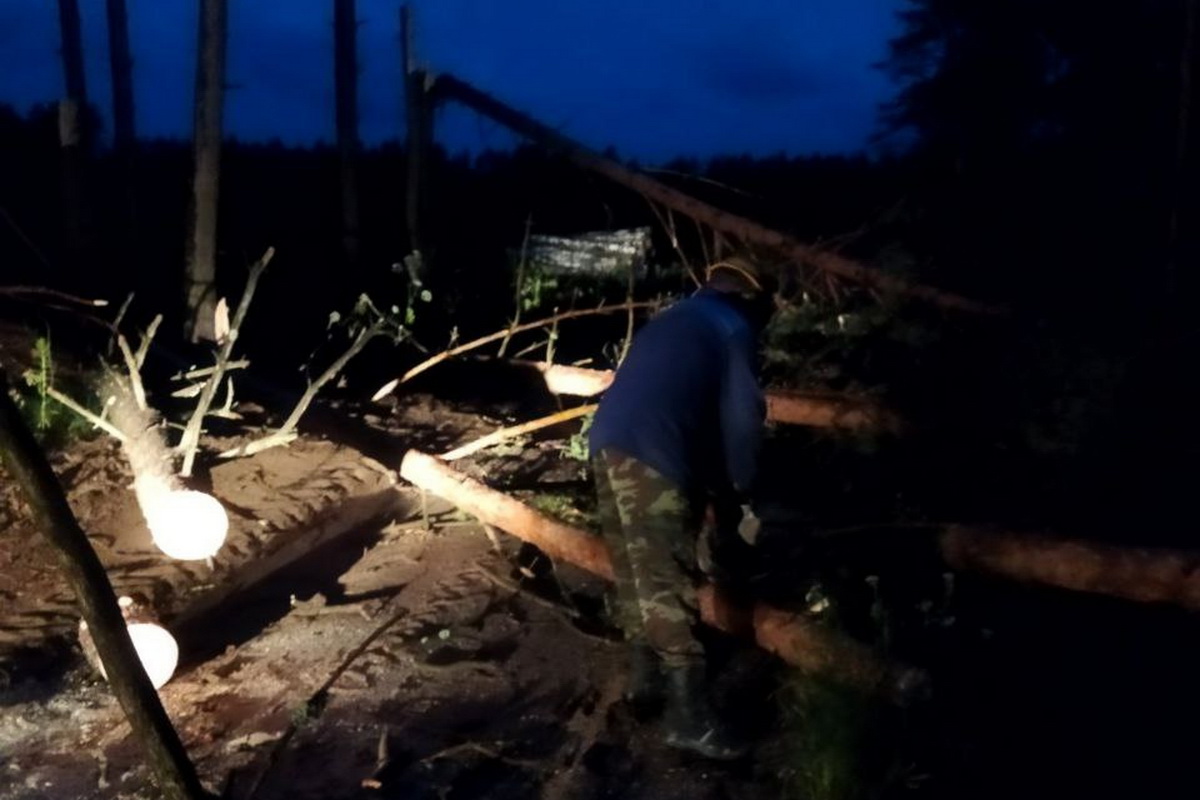 Также нанесен ущерб лесному фонду. Работникам Жлобинского лесхоза ночью пришлось разблокировать лесовоз, который застрял на лесной дороге, заваленной буреломом.