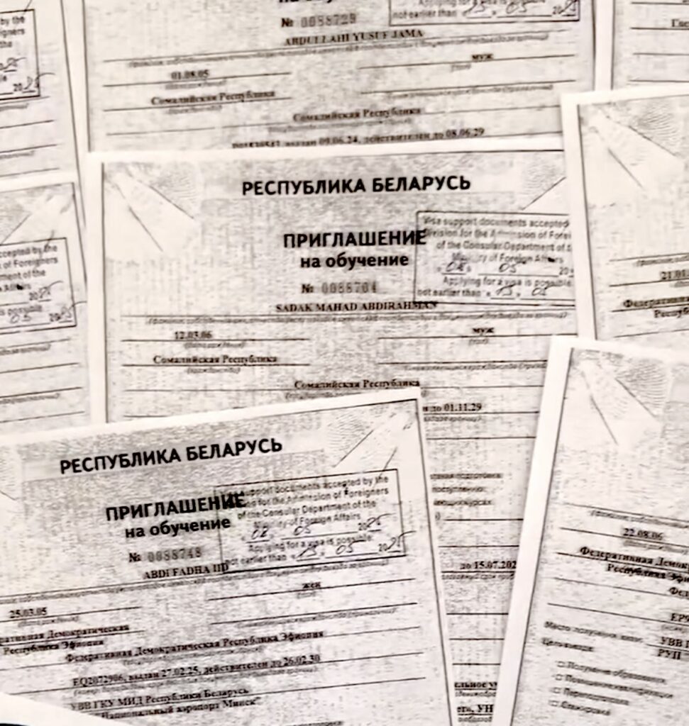 На многих фото «турфирмы» мигранты из Африки фотографируются на фоне стенда могилевского Белорусско-Российского университета. На сайте вуза указано, что там учится около 300 иностранных студентов. Подготовительные курсы там обойдутся в 1500 долларов в год.