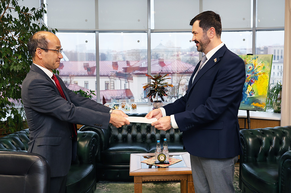 1 декабря первый замминистра иностранных дел Сергей Лукашевич принял копии верительных грамот у назначенного Чрезвычайного и Полномочного Посла Японии в Республике Беларусь Кадзухиро Куно.