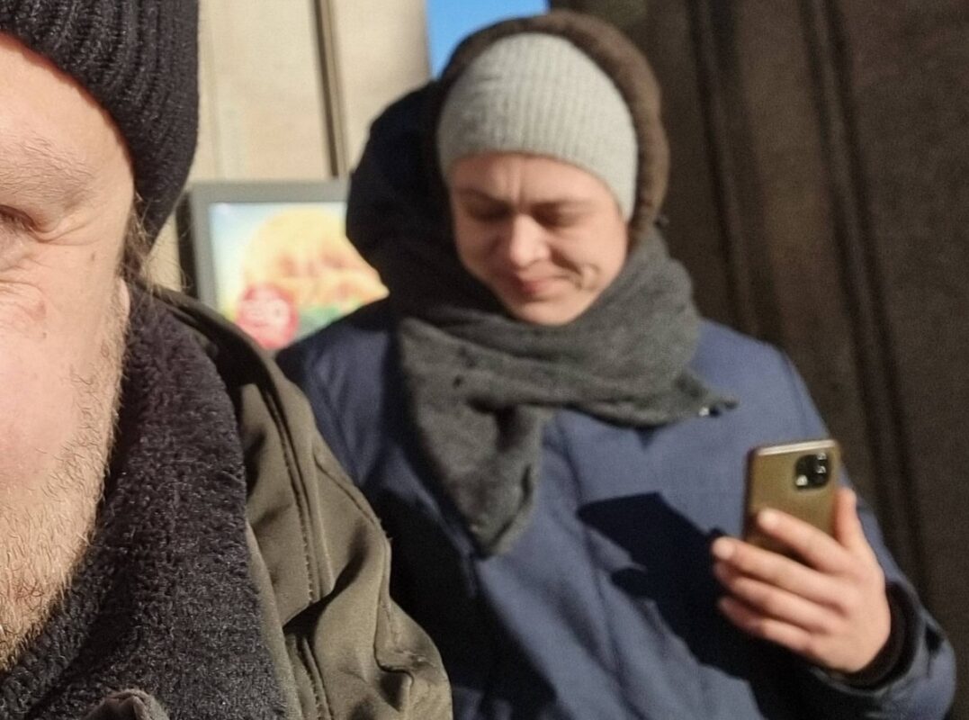 Он попробовал сделать селфи так, чтобы в кадр попала эта женщина, но она резко развернулась и спрятала лицо. После этого отошла, стала значительно дальше от нас, но продолжила направлять камеру в сторону новых беларусов, которые подходили к дверям с детьми.