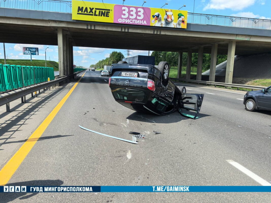 Легковушка столкнулась с фурой и опрокинулась в районе 17-го км внутреннего кольца МКАД, сообщает УГАИ ГУВД Мингорисполкома. К счастью, в ДТП никто не пострадал.