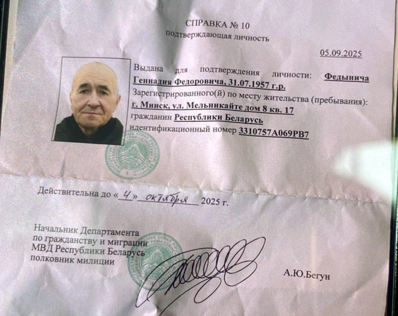 На справке указано, что она выдана 5 сентября 2025 года, за пять дней до освобождения. Она подписана Алексеем Бегуном, который на тот момент занимал пост начальника Департамента по гражданству и миграции. Новый начальник был назначен 8 сентября.