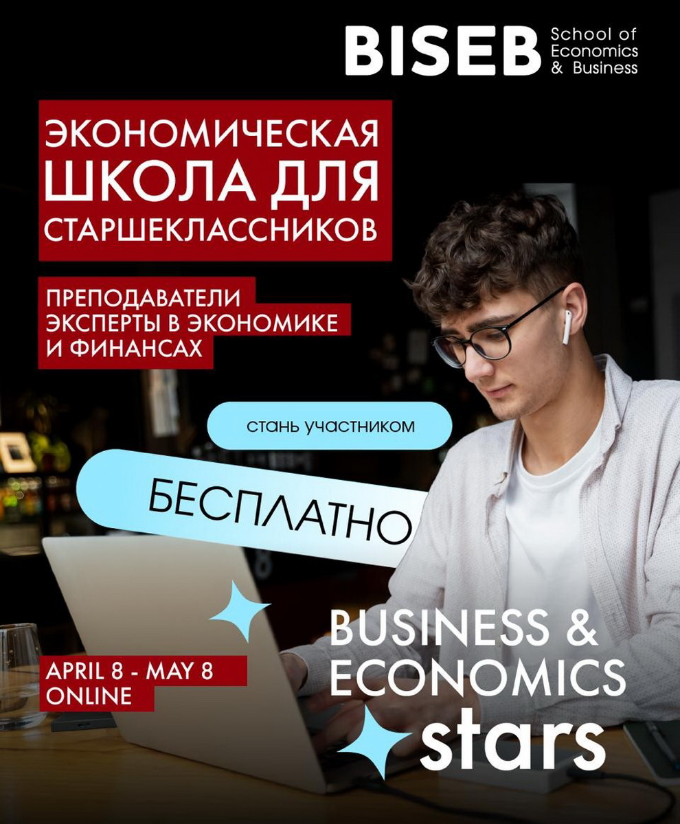 Открыт набор на бесплатную онлайн-школу Business & Economics Stars для старшеклассников и молодых людей в возрасте от 15 до 25 лет, которые хотят познакомиться с экономикой, финансами и бизнесом до поступления в университет. Она пройдет с 8 апреля по 8 мая, заявки принимаются до 6 апреля.