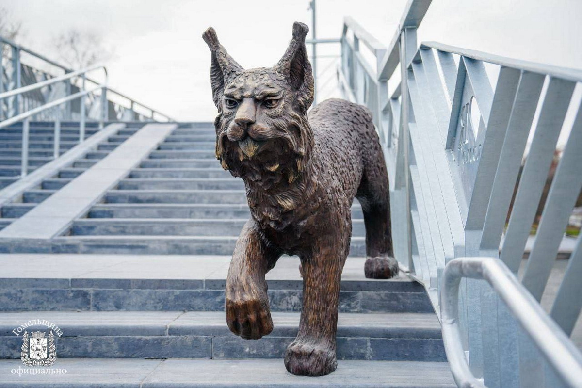 Мост в Гомеле также стал одной из самых эффектных смотровых площадок благодаря стеклянным вставкам в полотне с видом на Сож, бронзовым рысям и другим дополнениям.