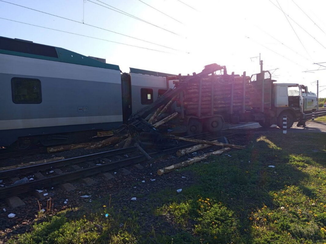 На участке Осиповичи — Жлобин поезд межрегиональных линий бизнес-класса №752 Минск — Гомель столкнулся с лесовозом, который выехал на красный сигнал светофора. ЧП случилось при исправно работающей световой и звуковой сигнализации на железнодорожном переезде перегона Телуша-Красный Берег сегодня в 17.55, сообщает пресс-служба БЖД.