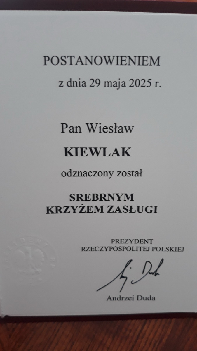 Бывшему вице-председателю Союза поляков Беларуси Веславу Кевляку вручили государственную награду Польши «Серебряный Крест заслуги».