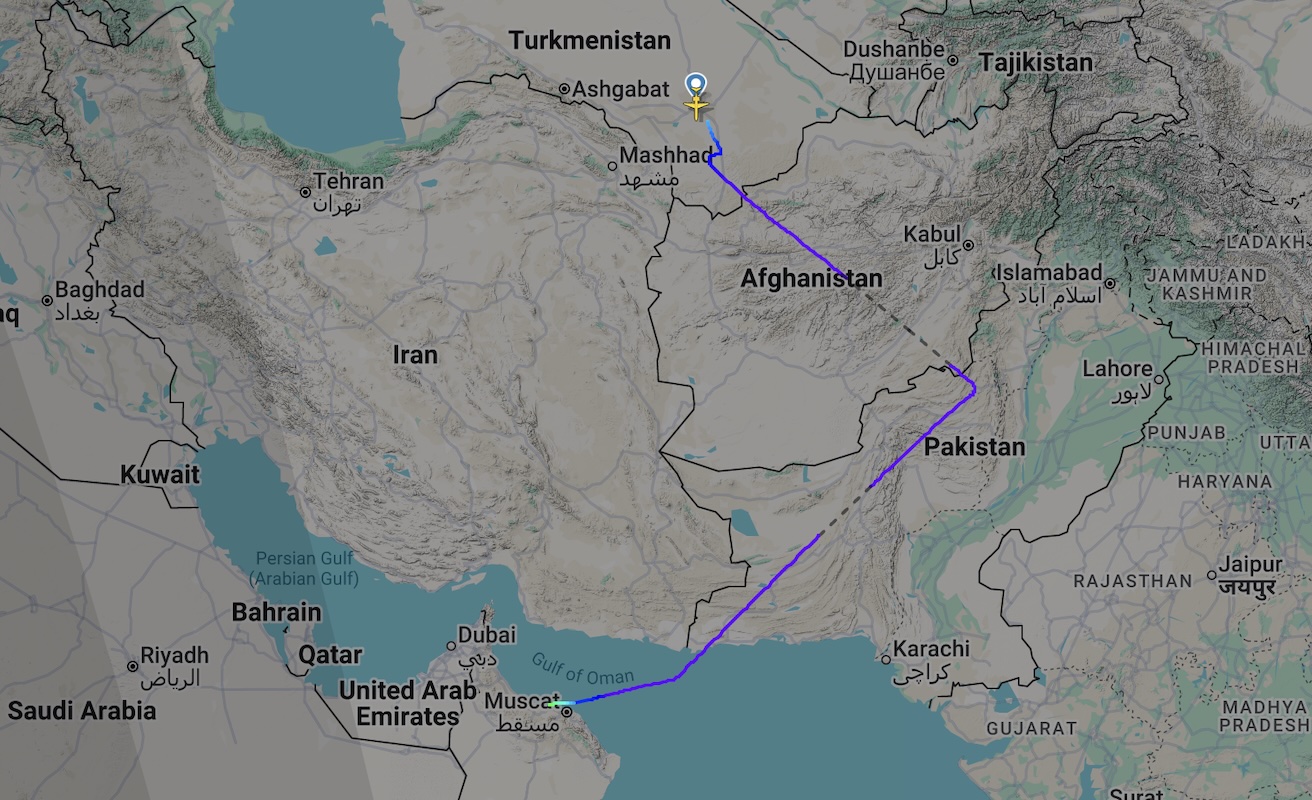 В регионе сейчас идет война и самолет вынужден был облетать зоны боевых действий через Россию, Туркменистан, Афганистан и Пакистан.