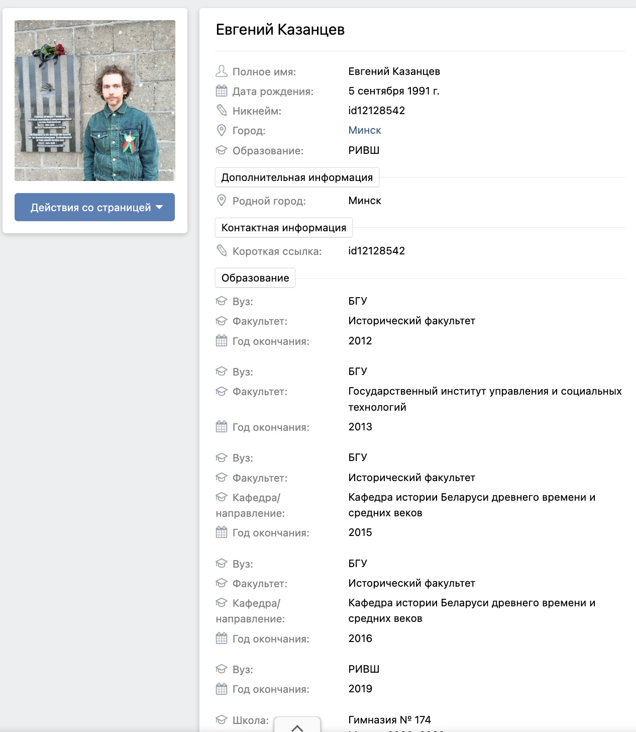 В сети можно найти упоминания Казанцева. Так, в сентябре 2022 года он давал интервью телеканалу СТВ как магистр исторических наук, исследователь. 8 лет назад СТВ делало о нем сюжет как о человеке, который «придумал гербы для всех районов Минска».