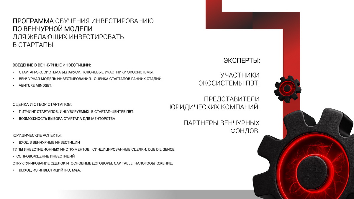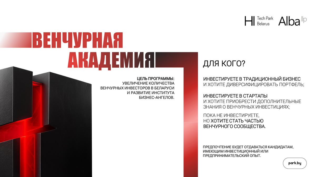 «Венчурная академия» — бесплатная образовательная программа для тех, кто хочет систематизировать знания о венчурных сделках. За два месяца участников обещают погрузить в практику оценки проектов, юридические аспекты и основы постинвестиционного управления. Обучение построено на менторстве и практических заданиях.
