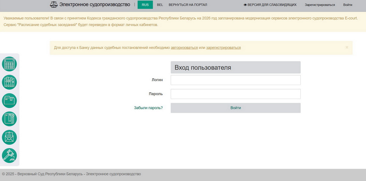 «В связи с принятием Кодекса гражданского судопроизводства Республики Беларусь на 2026 год запланирована модернизация сервисов электронного судопроизводства E-court. Сервис «Расписание судебных заседаний» будет переведен в формат личных кабинетов», — говорится в нем.