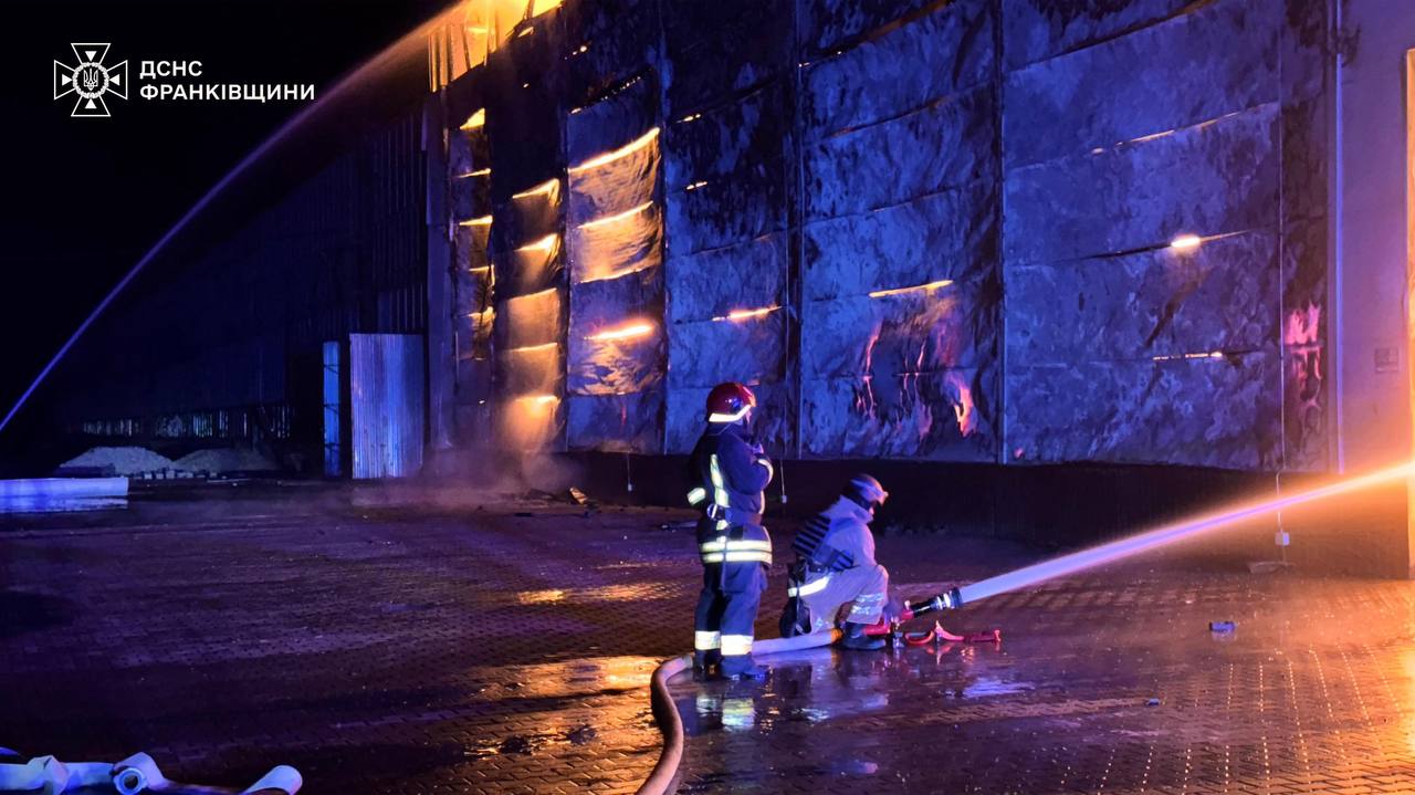 В Ивано-Франковской области в результате удара возник большой пожар: горят складские здания на трех участках общей площадью около 9 тыс. кв. м. Пожар локализован, идет его тушение, задействованы 130 спасателей и 35 единиц техники.