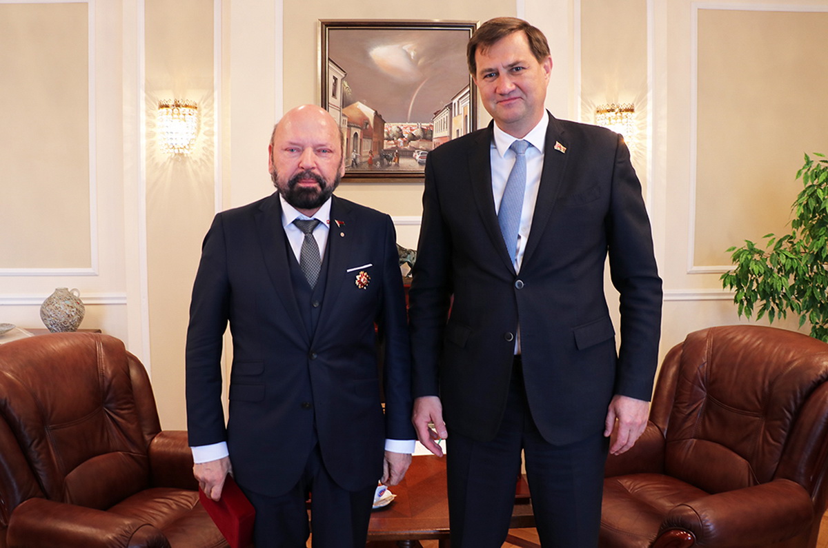 Швейцарцу вручен нагрудный знак отличия органов дипломатической службы «Партнерство» за значительный личный вклад в укрепление беларусско-швейцарских связей в социально-гуманитарной сфере.