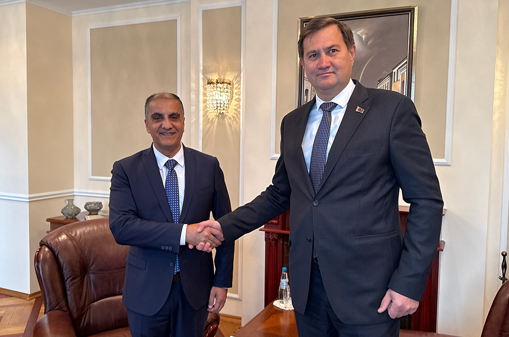 Министр иностранных дел Беларуси Максим Рыженков принял посла Палестины Ахмеда Мохаммеда аль-Мадбуха по случаю завершения его дипломатической миссии.