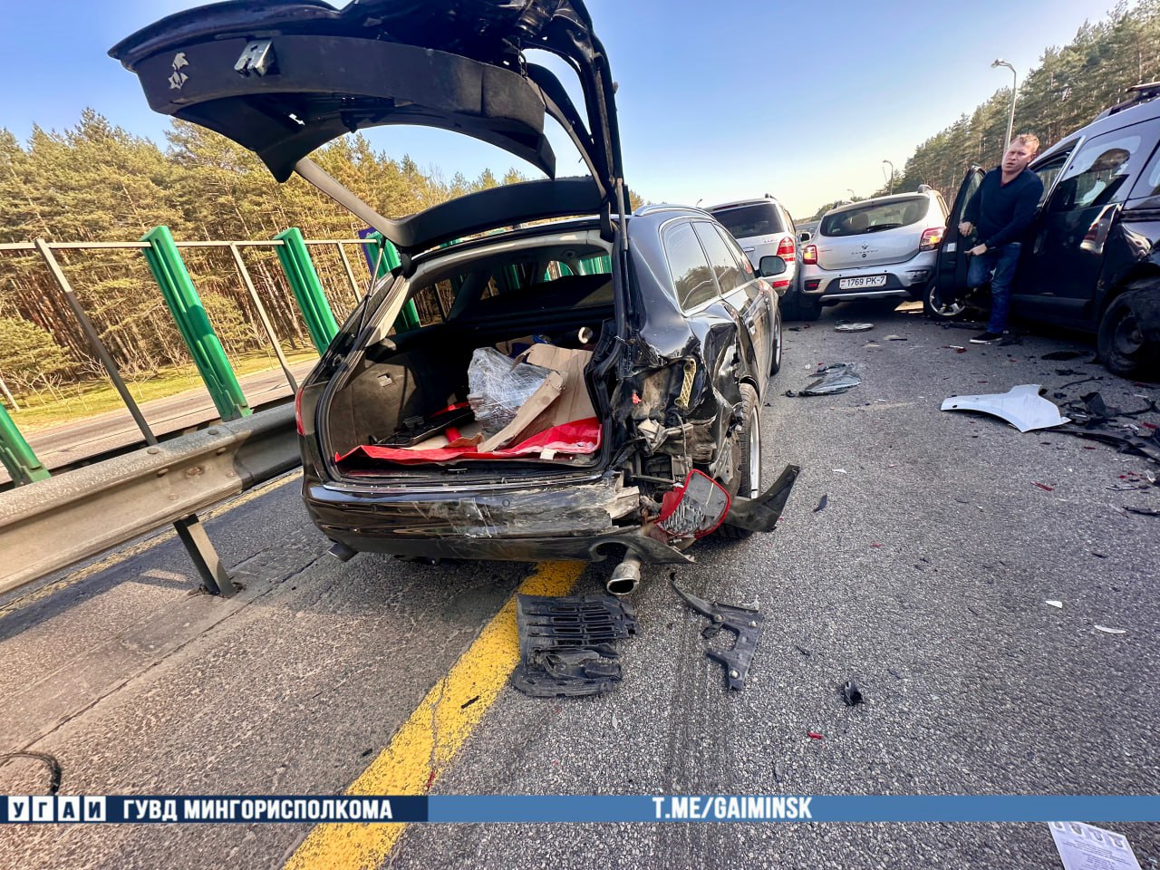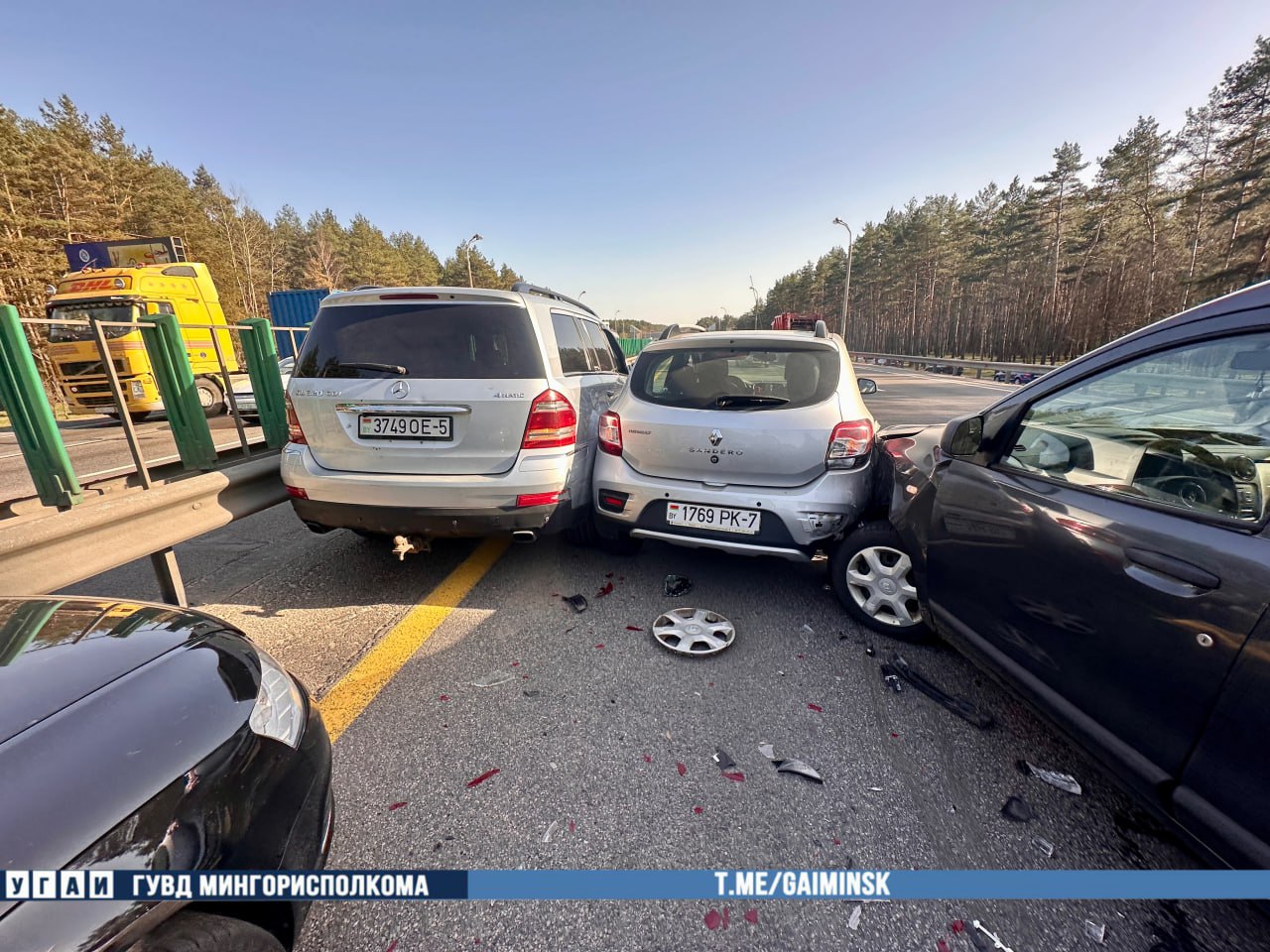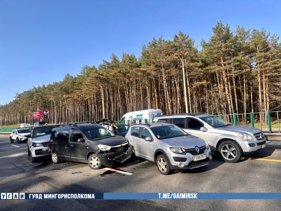 Столкнулись Land Rover, Audi, Lada, Mercedes и два Renault. Пострадавших нет, сообщает УГАИ ГУВД Мингорисполкома.