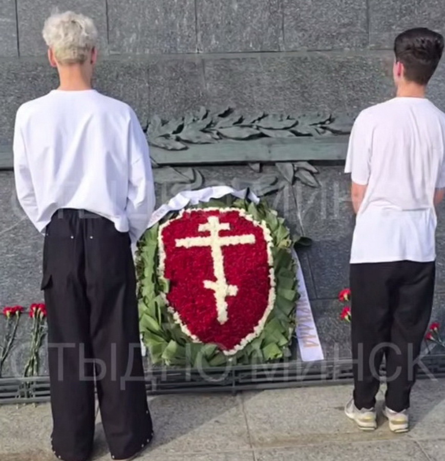 После оба кладут по цветку к монументу.