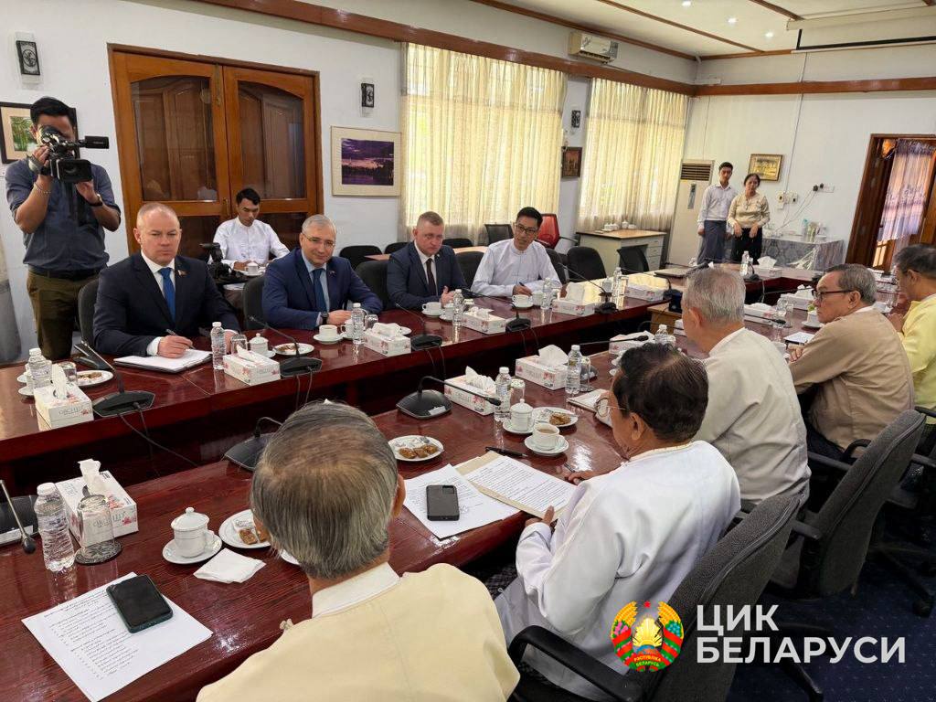 Как сообщили в ЦИК, делегация встретилась с руководством Мьянманского Института Стратегических Исследований. Обсуждались региональная обстановка, внутриполитическая ситуация в стране и проведение избирательной кампании. Представители делегации поделились «опытом проведения избирательных кампаний» в Беларуси.