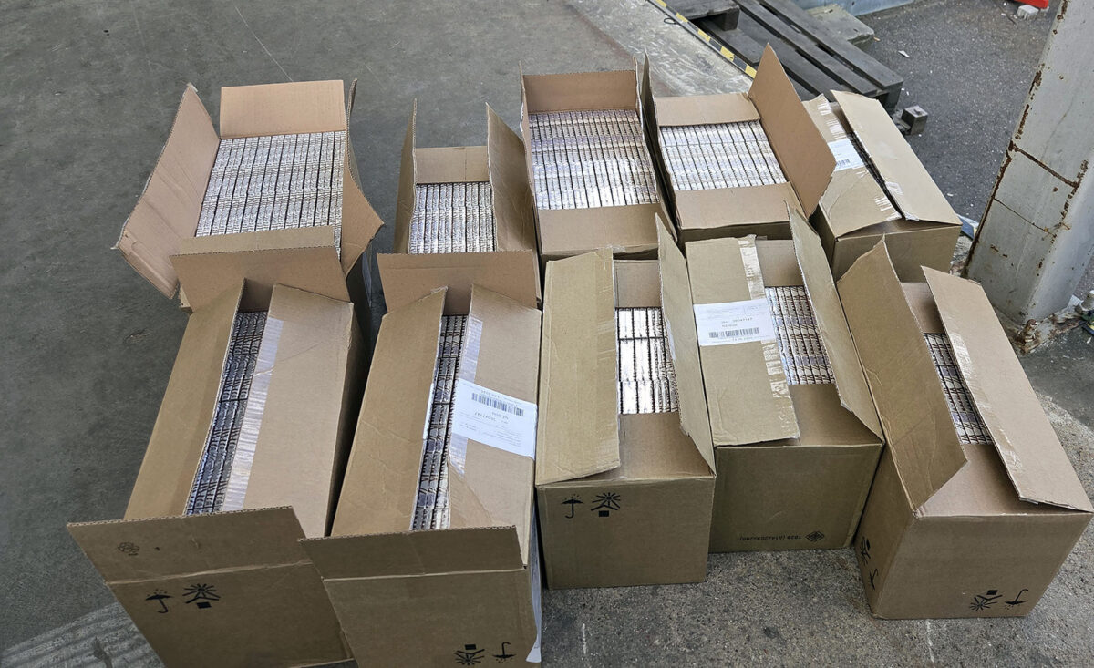 Во втором грузовике под мешками с огурцами нашли коробки с беларусскими сигаретами NZ Gold Superslims. По предварительной оценке, в полуприцепе перевозилось около 1000 коробок сигарет стоимостью 2,4 млн евро.