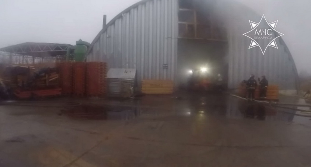 На месте наблюдалось горение готовой продукции внутри металлического арочного склада. Людей внутри не было. Спасатели ликвидировали пожар. Никто не пострадал. Огонь повредил деревянные поддоны и термообработанную доску.