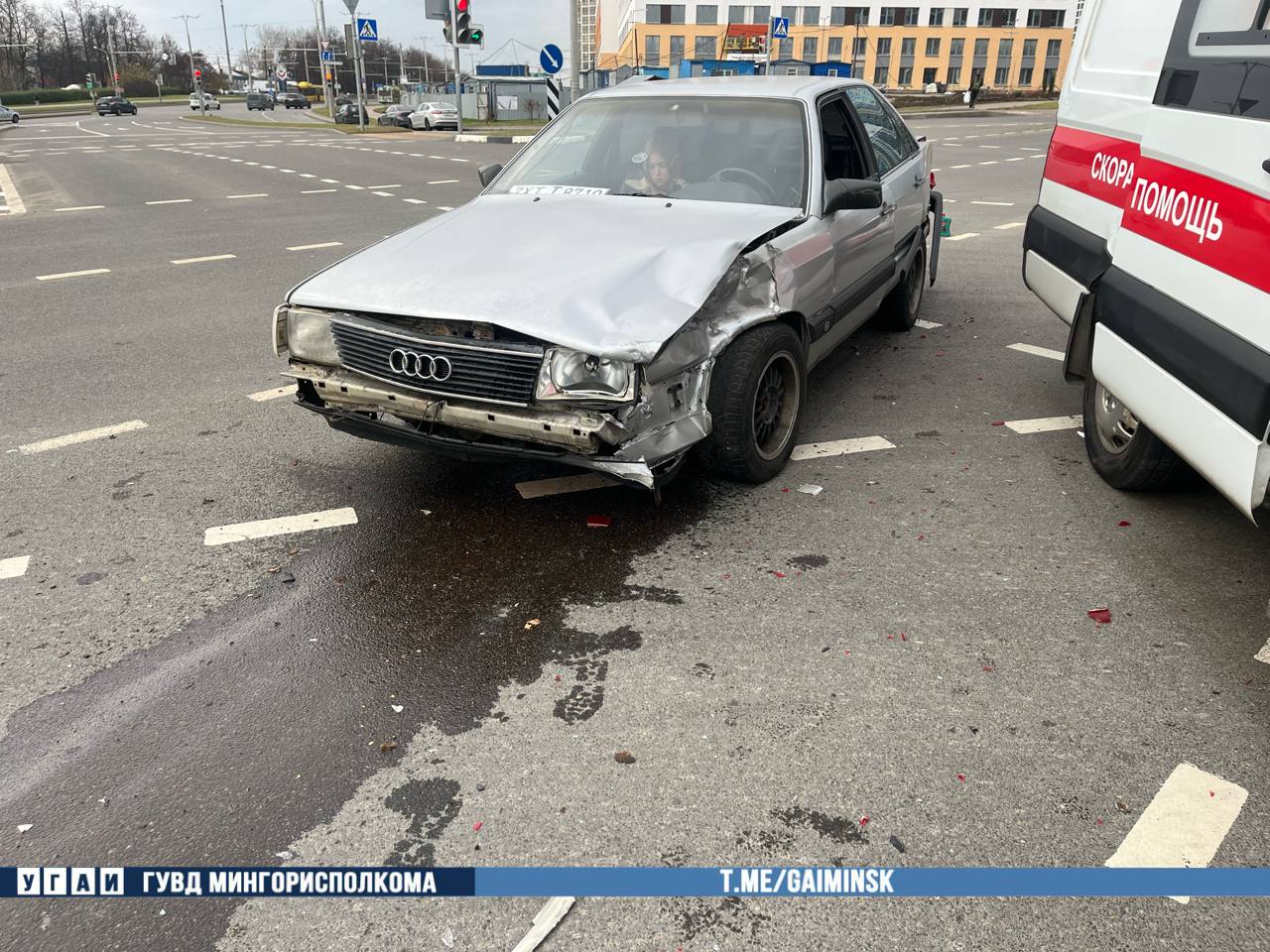 Сегодня на перекрестке проспекта Мира и улицы Алферова в Минске произошло ДТП с участием «скорой», сообщает УГАИ ГУВД Мингорисполкома.