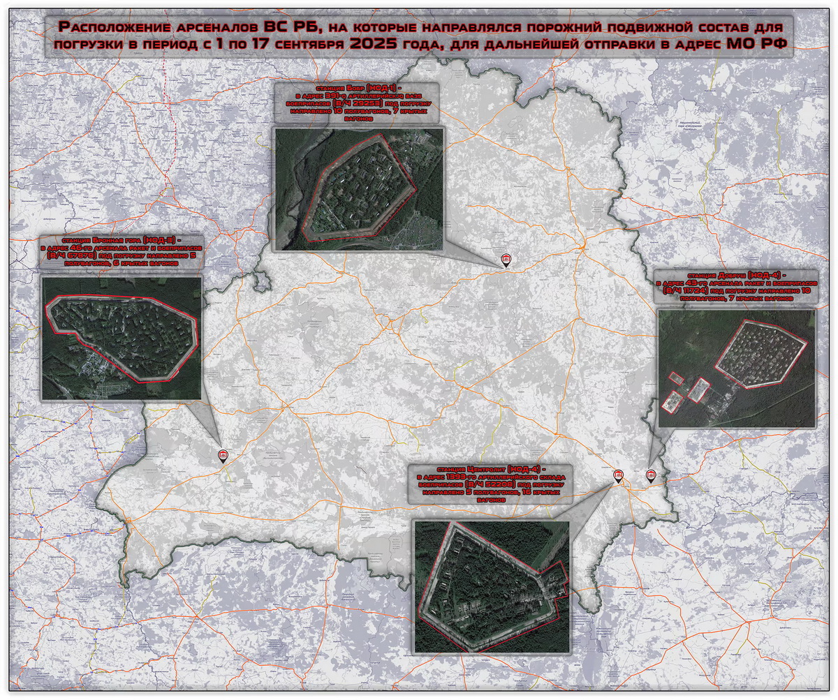 По данным «Сообщества железнодорожников Беларуси», одновременно с ввозом в Беларусь значительного объема взрывчатых материалов, в первой половине сентября 2025 года со станций РЖД на беларусские арсеналы были направлены порожние вагоны под погрузку ВМ с последующей отправкой в Россию. Речь идет о по меньшей мере 66 вагонах (30 полувагонах и 36 крытых), подача и погрузка, как утверждается, продолжаются.
