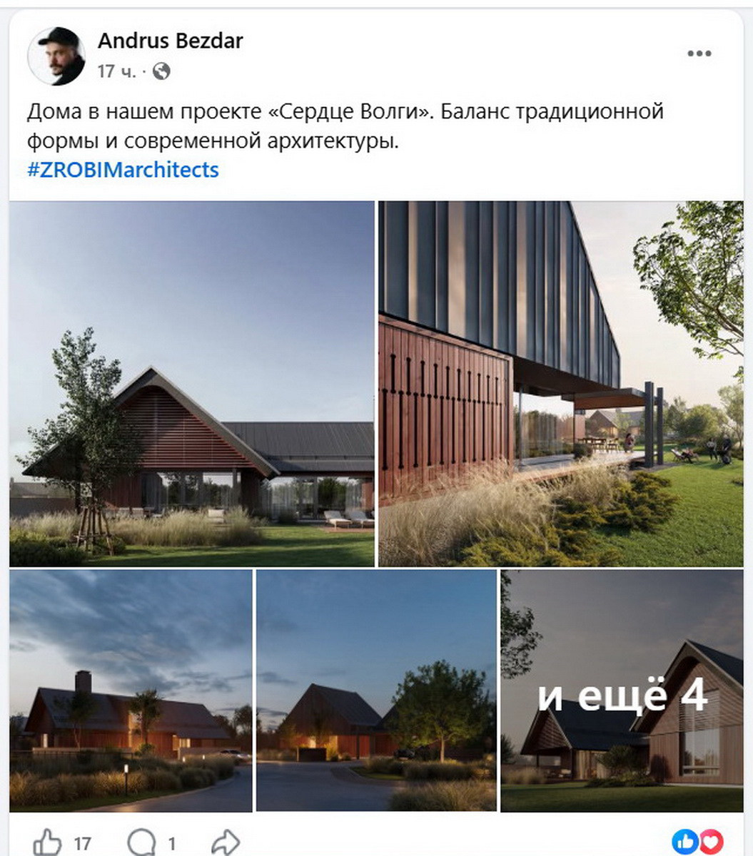«Дома в нашем проекте «Сердце Волги». Баланс традиционной формы и современной архитектуры», — написал он.
