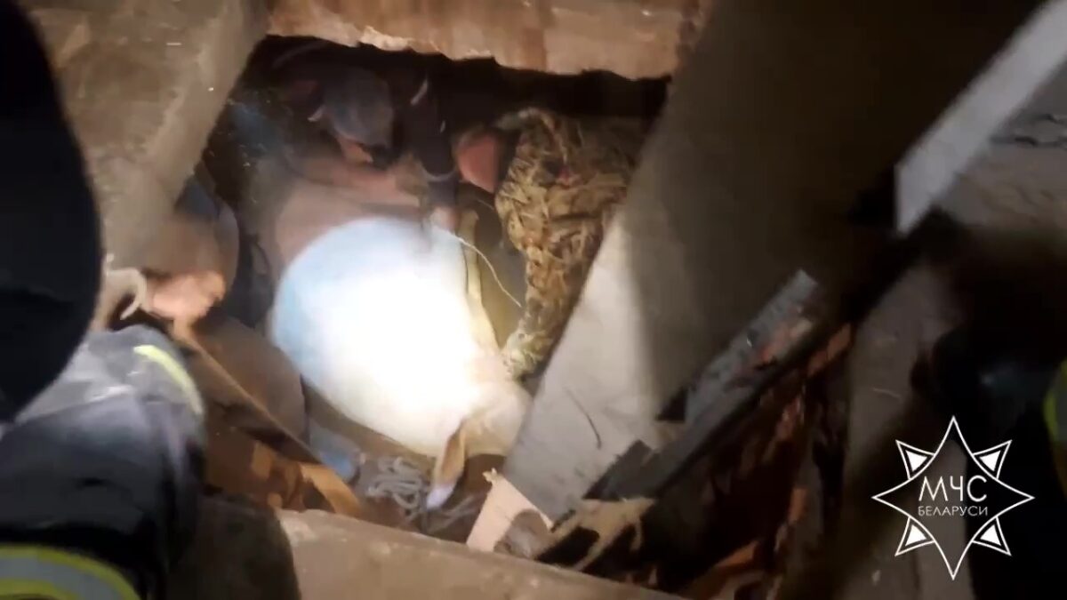 Спасатели в Копыльском районе достали из погреба 300-килограммовую свинью