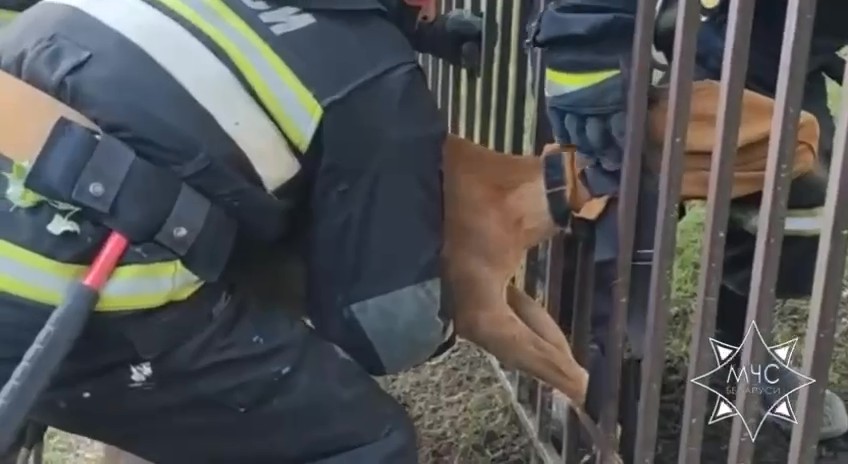 Работники МЧС оказали помощь косуле в Борисове. Животное застряло в заборе на улице Трусова.