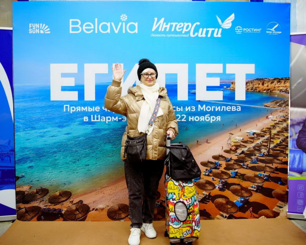 Сегодня Могилевский аэропорт встретил первых пассажиров обновленного маршрута. В зоне регистрации работала тематическая фотозона, пассажиров угощали сладостями. Первых зарегистрированных путешественников в Египет ожидали памятные подарки от аэропорта и авиакомпании, а главным украшением события стал праздничный торт.