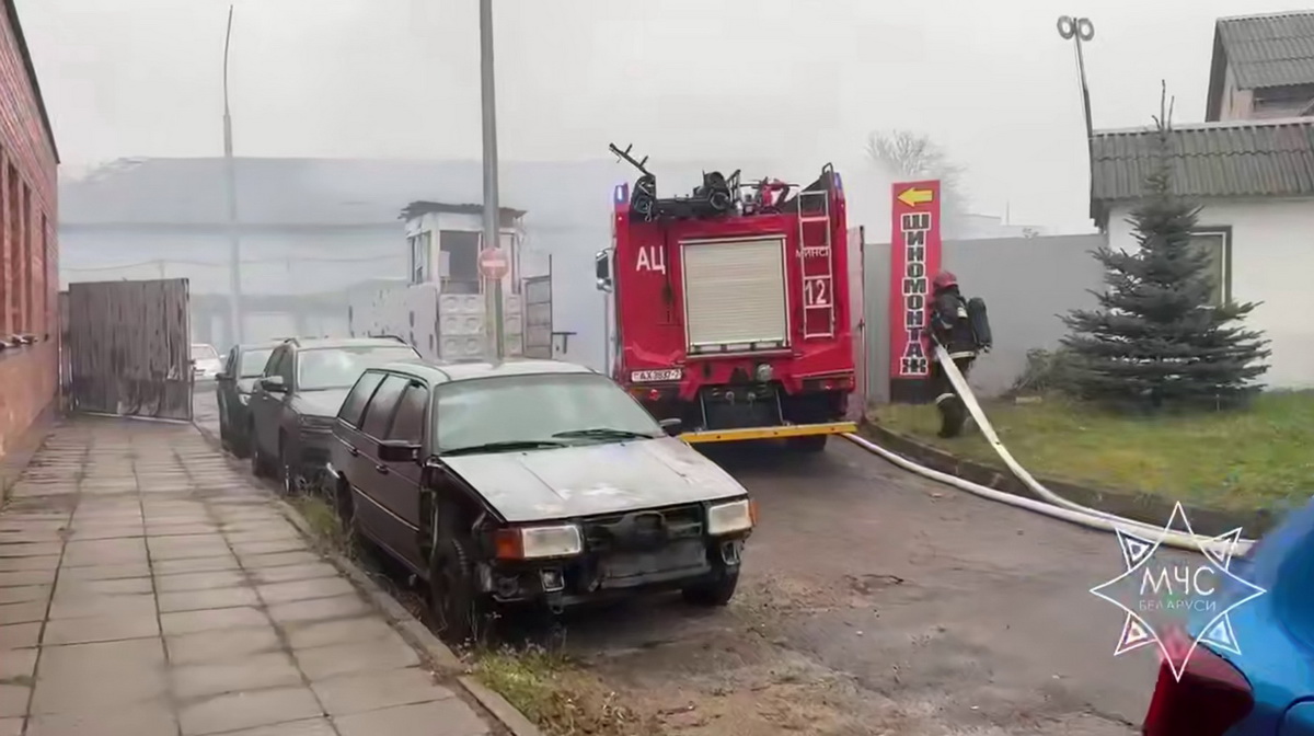 (Обновлено) Подразделения МЧС выехали по сообщению о возгорании на СТО по улице Гикало в Минске.