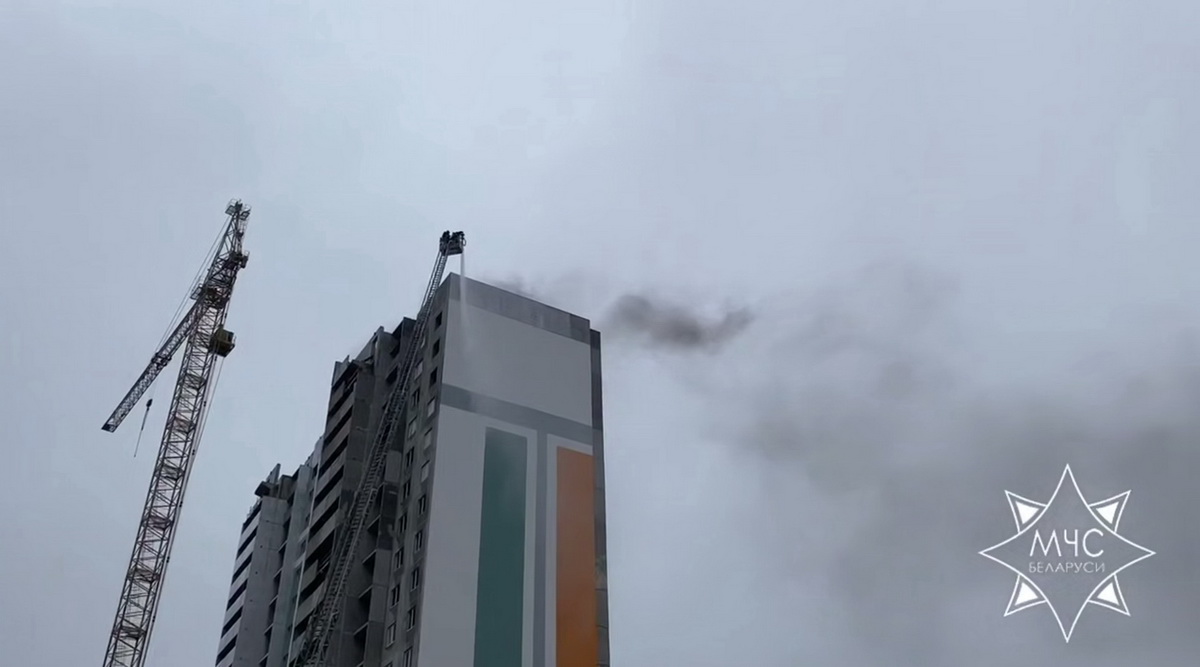 Строящаяся многоэтажка загорелась в Минске на улице Купревича, сообщает пресс-служба МЧС.