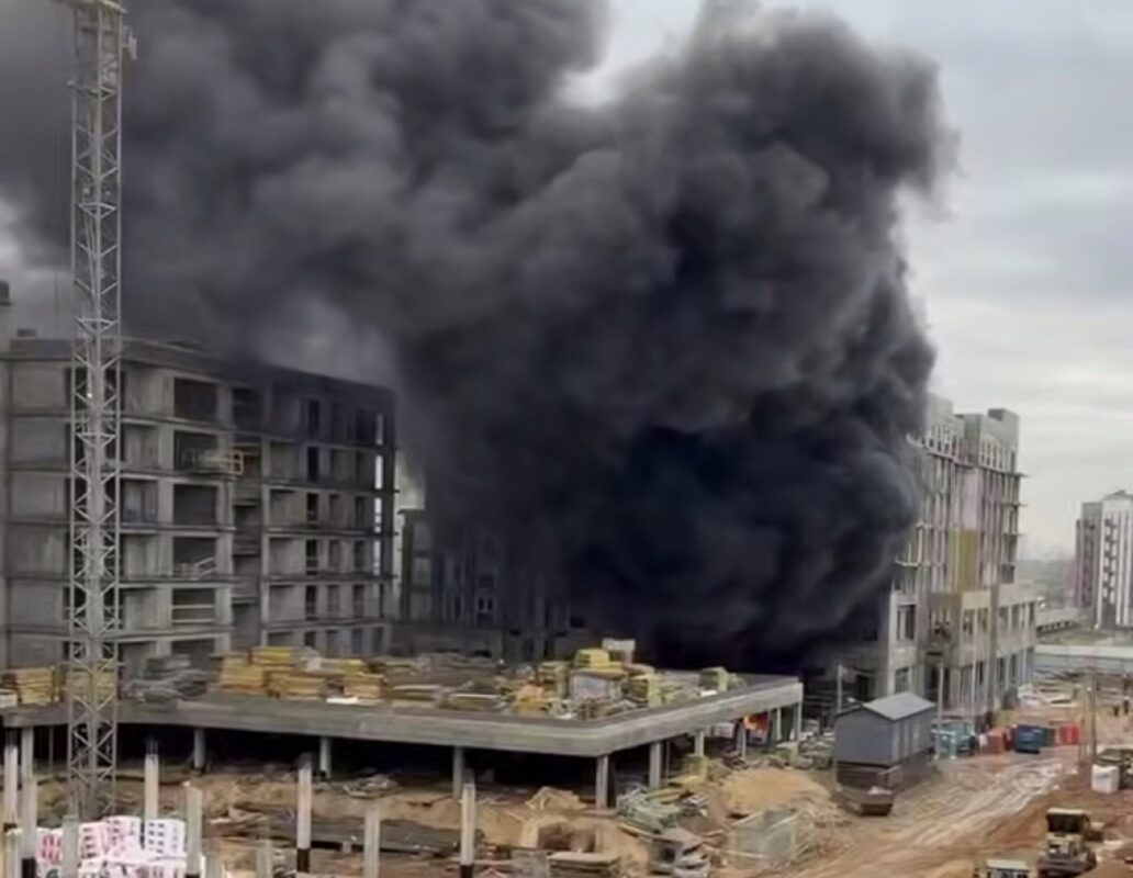Утром 10 декабря при строительства дома в жилом комплексе «Северный берег» произошел пожар. Очевидцы сняли густые клубы дыма над стройплощадкой.