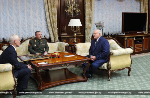 Александр Лукашенко встречается с министром обороны России Андреем Белоусовым, который сегодня прибыл в Минск.