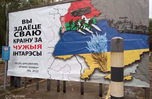 На украинско-беларусской границе появились билборды с призывом беларусам не сдавать свои интересы России.