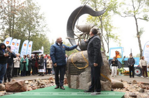 Памятник креветке торжественно открыли на областных «Дажынках» в Белоозерске. В церемонии приняли участие