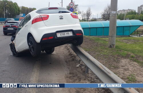 Автомобиль Infinity протаранил разделительное ограждение на проспекте Победителей в Минске, сообщает