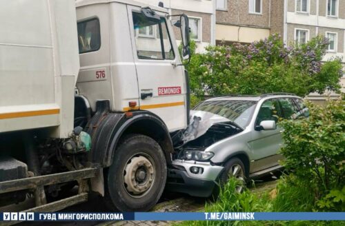 Грузовик столичного строительного предприятия МАПИД врезался в городской автобус №107 в Минске, сообщает