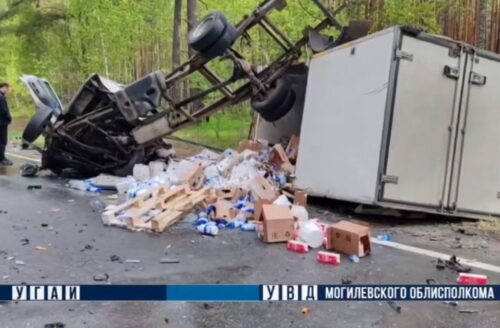 Легковушка опрокинулась после столкновения с грузовиком в Минском районе. Авария произошла сегодня в