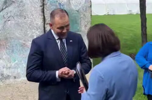 Министр иностранных дел Сергей Алейник пожал руку советнику Светланы Тихановской Франаку Вячорке на полях