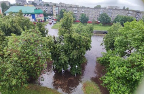 Летний ливень затопил Гомель. Некоторые участки улиц подтоплены, есть случаи падения деревьев на автомобили.