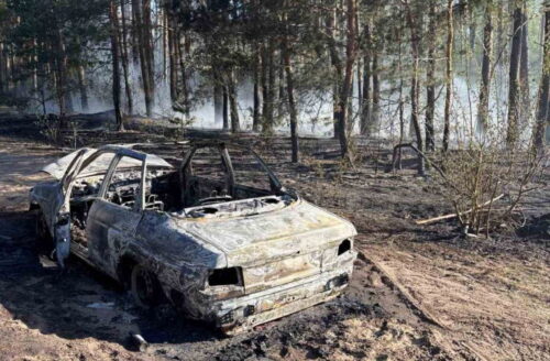 Лес загорелся в Калинковичском районе из-за умышленного поджога автомобиля, сообщает пресс-служба Министерства