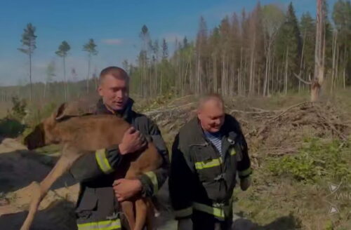 На месте лесного пожара в Вороновском районе спасатели нашли лосенка. Как рассказали в МЧС, при проливке