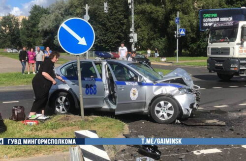 Автомобиль ГАИ столкнулся с легковым Belgee в Минске, сообщает УГАИ ГУВД Мингорисполкома. ДТП произошло