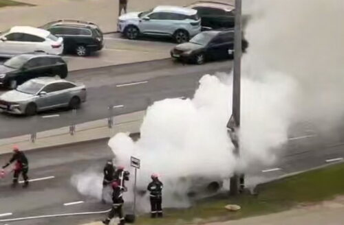 На улице Николы Теслы в Минске горела машина. Видео ЧП публикует «Минск-Новости».